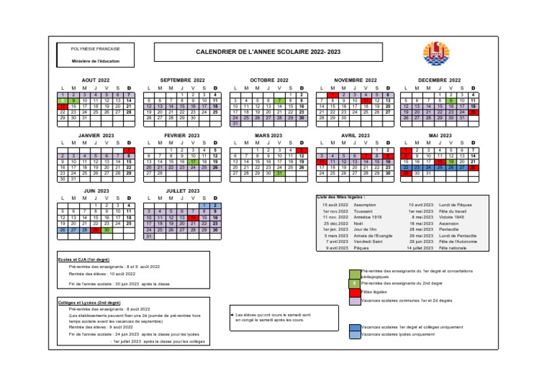 Calendrier Scolaire Septembre 2022 à Aout 2021